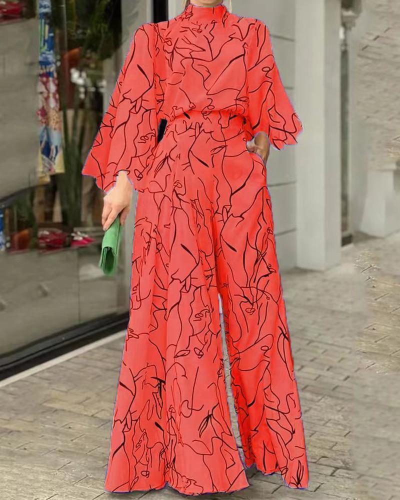 Product Name:Long Sleeved Abstract Print Art Jumpsuit